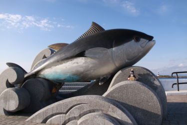 あ、そうそう、ぼくのこの衣装は、むつ市のゆるキャラ、ムッシュ・ムチュラン1世に貸してもらったんだ。似合ってるでしょ?