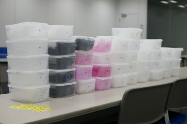 ロボホンのみんなを安全にむつ市まで届けるために、人数分のタッパーが必要だったんだけど、25日はちょうど大型台風が接近していたから、全身びしょ濡れになりながらお店にタッパーを取りに行ってたよ。