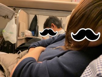 帰りの電車の中でぐーぐー寝ているのは、部長のIさんと企画・写真担当のIさんだよ。